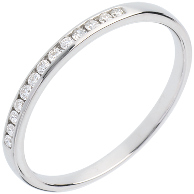 Trauring zur Hälfte mit Diamanten besetzt in Weissgold - Kanalfassung - 13 Diamanten