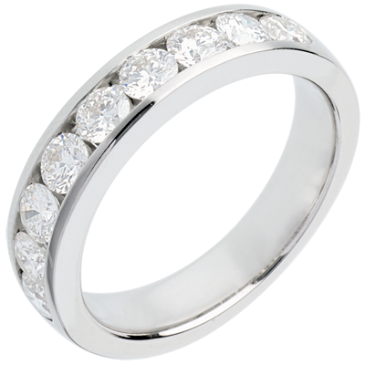 Trauring zur Hälfte mit Diamanten besetzt in Weissgold - Kanalfassung - 1 Karat - 9 Diamanten