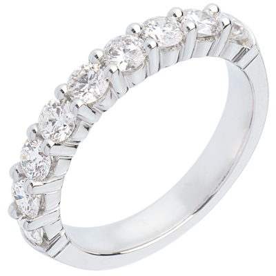 Trauring semi pavé in Weissgold - Krappenfassung - 1 Karat - 9 Diamanten