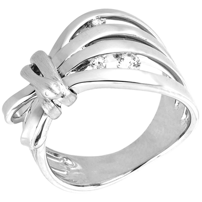 Die kurvige Form dieses Ringes ist der Inbegriff von Eleganz und Sinnlichkeit. Im perfekten und makellosen Paradies stünde dieser Ring für Versuchung und natürliche Schönheit. Gezeichnet von Thais Takase, ESMOD. 3 Diamanten : 0.14 Karat - Weißgold (750/-): 5.3 g. Weitere Abmessungen