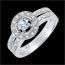 Dieser Verlobungsring aus 18 Karat Weißgold zeigt ein Doppelring-Design, das die Schönheit des zentralen Steins mit Raffinesse hervorhebt.