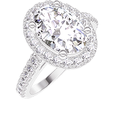 Ring Weißgold 750/-(18Kt) - Labordiamant Oval 1 Karat - Halo Labordiamant - Fassung Labordiamant