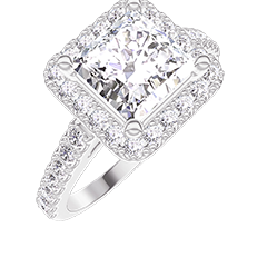 Ring Weißgold 750/-(18Kt) - Labordiamant Prinzess 1 Karat - Halo Labordiamant - Fassung Labordiamant