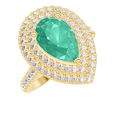 Ring Gelbgold 750/-(18Kt) - Smaragd Tropfen 1 Karat - Halo Diamant - Fassung Diamant