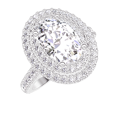 Ring Weißgold 375/-(9Kt) - Labordiamant Oval 1 Karat - Halo Labordiamant - Fassung Labordiamant