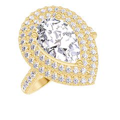 Ring Gelbgold 750/-(18Kt) - Labordiamant Tropfen 1 Karat - Halo Labordiamant - Fassung Labordiamant