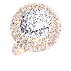 Ring Roségold 375/-(9Kt) - Labordiamant Rund 2 Karat - Halo Labordiamant - Fassung Labordiamant