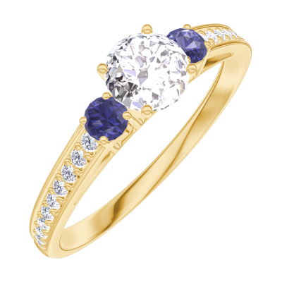 « L'ATELIER » NR. 160066Ring Gelbgold 375/-(9Kt) - Diamant rund 0.3 Karat - Seitliche Steine Blauer Saphir - Fassung Diamant 4.8