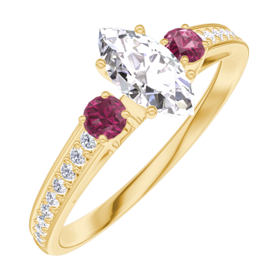 « L'ATELIER » Nº160545Ring Gelbgold 750/-(18Kt) - Diamant Marquise 0.3 Karat - Seitliche Steine Rubin - Fassung Diamant