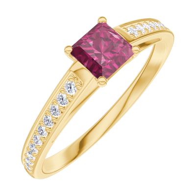 « L'ATELIER » Nº160706Ring Gelbgold 375/-(9Kt) - Rubin Prinzess 0.3 Karat - Fassung Diamant