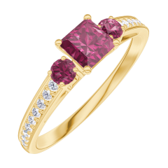« L'ATELIER » NR. 160745Ring Gelbgold 750/-(18Kt) - Rubin Prinzess 0.3 Karat - Seitliche Steine Rubin - Fassung Diamant