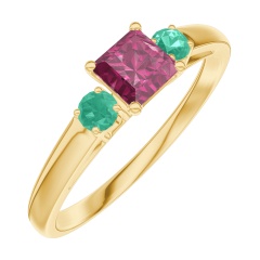 « L'ATELIER » NR. 160782Ring Gelbgold 375/-(9Kt) - Rubin Prinzess 0.3 Karat - Seitliche Steine Smaragd