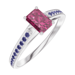 Ring Weißgold 750/-(18Kt) - Rubin Rechteckig 0.3 Karat - Fassung Blauer Saphir