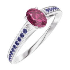 Ring Weißgold 750/-(18Kt) - Rubin Oval 0.3 Karat - Fassung Blauer Saphir