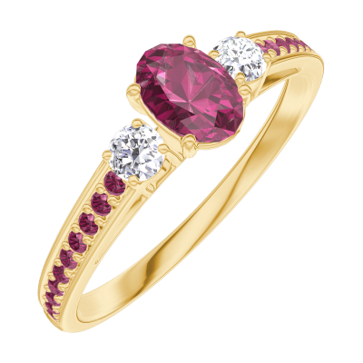 « L'ATELIER » Nº160930Ring Gelbgold 375/-(9Kt) - Rubin Oval 0.3 Karat - Seitliche Steine Diamant - Fassung Rubin 5