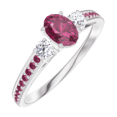 « L'ATELIER » NR. 160932Ring Weißgold 375/-(9Kt) - Rubin Oval 0.3 Karat - Seitliche Steine Diamant - Fassung Rubin 5