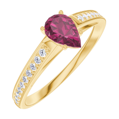 Ring Gelbgold 750/-(18Kt) - Rubin Tropfen 0.3 Karat - Fassung Diamant
