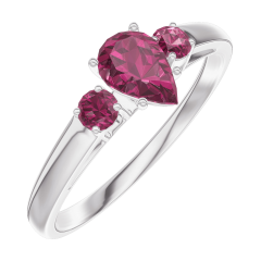 Ring Weißgold 750/-(18Kt) - Rubin Tropfen 0.3 Karat - Seitliche Steine Rubin