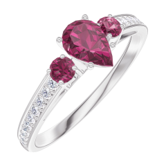 « L'ATELIER » NR. 161048Ring Weißgold 375/-(9Kt) - Rubin Tropfen 0.3 Karat - Seitliche Steine Rubin - Fassung Diamant