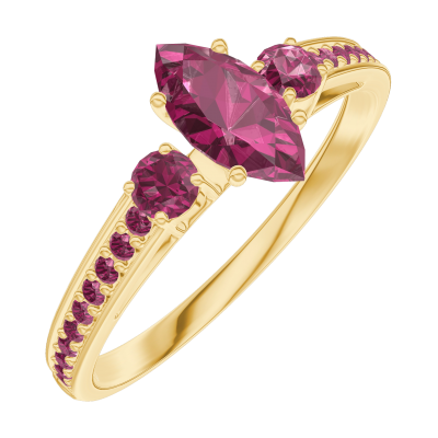 « L'ATELIER » NR. 161150Ring Gelbgold 375/-(9Kt) - Rubin Marquise 0.3 Karat - Seitliche Steine Rubin - Fassung Rubin
