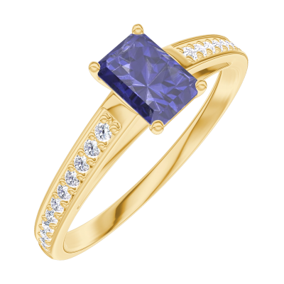 « L'ATELIER » Nº161405Ring Gelbgold 750/-(18Kt) - Blauer Saphir Rechteckig 0.3 Karat - Fassung Diamant