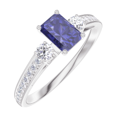 « L'ATELIER » NR. 161428Ring Weißgold 375/-(9Kt) - Blauer Saphir Rechteckig 0.3 Karat - Seitliche Steine Diamant - Fassung Diamant