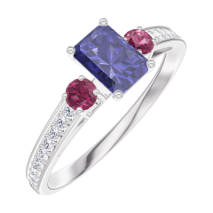 « L'ATELIER » NR. 161448Ring Weißgold 375/-(9Kt) - Blauer Saphir Rechteckig 0.3 Karat - Seitliche Steine Rubin - Fassung Diamant