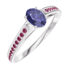 Ring Weißgold 750/-(18Kt) - Blauer Saphir Oval 0.3 Karat - Fassung Rubin
