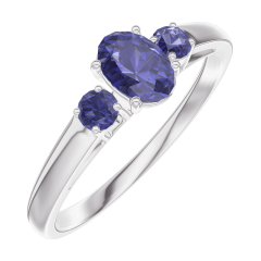 Ring Weißgold 375/-(9Kt) - Blauer Saphir Oval 0.3 Karat - Seitliche Steine Blauer Saphir