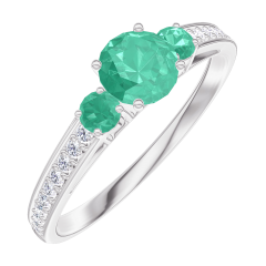 Ring Weißgold 375/-(9Kt) - Smaragd rund 0.3 Karat - Seitliche Steine Smaragd - Fassung Diamant