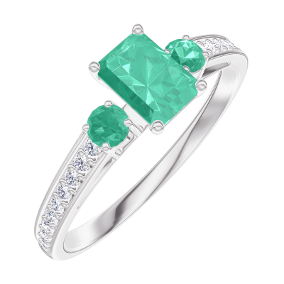 « L'ATELIER » Nº162087Ring Weißgold 750/-(18Kt) - Smaragd Rechteckig 0.3 Karat - Seitliche Steine Smaragd - Fassung Diamant