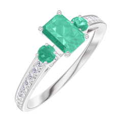 Ring Weißgold 375/-(9Kt) - Smaragd Rechteckig 0.3 Karat - Seitliche Steine Smaragd - Fassung Diamant