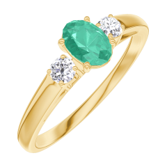 Ring Gelbgold 375/-(9Kt) - Smaragd Oval 0.3 Karat - Seitliche Steine Diamant