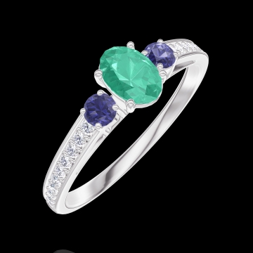 « L'ATELIER » Nº162168Ring Weißgold 375/-(9Kt) - Smaragd Oval 0.3 Karat - Seitliche Steine Blauer Saphir - Fassung Diamant 5