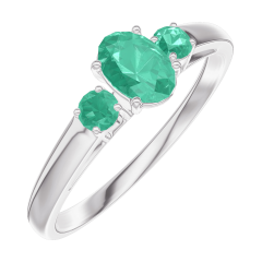 Ring Weißgold 375/-(9Kt) - Smaragd Oval 0.3 Karat - Seitliche Steine Smaragd