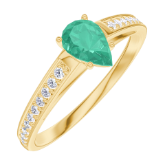 Ring Gelbgold 375/-(9Kt) - Smaragd Tropfen 0.3 Karat - Fassung Diamant