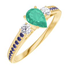 Ring Gelbgold 750/-(18Kt) - Smaragd Tropfen 0.3 Karat - Seitliche Steine Diamant - Fassung Blauer Saphir