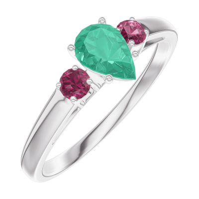 « L'ATELIER » Nº162243Ring Weißgold 750/-(18Kt) - Smaragd Tropfen 0.3 Karat - Seitliche Steine Rubin