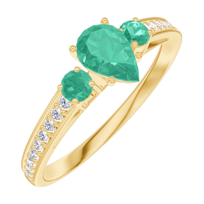 « L'ATELIER » NR. 162286Ring Gelbgold 375/-(9Kt) - Smaragd Tropfen 0.3 Karat - Seitliche Steine Smaragd - Fassung Diamant