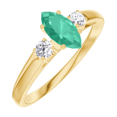 Ring Gelbgold 750/-(18Kt) - Smaragd Marquise 0.3 Karat - Seitliche Steine Diamant
