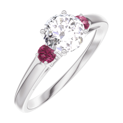 « L'ATELIER » Nº162443Ring Weißgold 750/-(18Kt) - Diamant rund 0.5 Karat - Seitliche Steine Rubin 4.9