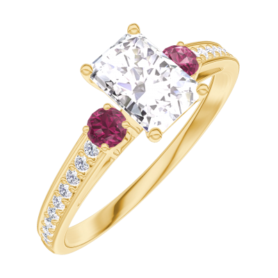 « L'ATELIER » Nº162646Ring Gelbgold 375/-(9Kt) - Diamant Rechteckig 0.5 Karat - Seitliche Steine Rubin - Fassung Diamant
