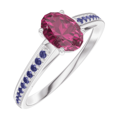 Ring Weißgold 750/-(18Kt) - Rubin Oval 0.5 Karat - Fassung Blauer Saphir