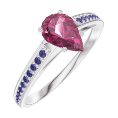 Ring Weißgold 750/-(18Kt) - Rubin Tropfen 0.5 Karat - Fassung Blauer Saphir
