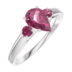 « L'ATELIER » NR. 163444Ring Weißgold 375/-(9Kt) - Rubin Tropfen 0.5 Karat - Seitliche Steine Rubin