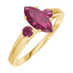 Ring Gelbgold 750/-(18Kt) - Rubin Marquise 0.5 Karat - Seitliche Steine Rubin