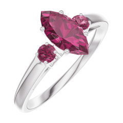 Ring Weißgold 750/-(18Kt) - Rubin Marquise 0.5 Karat - Seitliche Steine Rubin