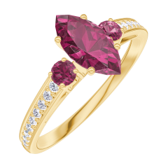 Ring Gelbgold 750/-(18Kt) - Rubin Marquise 0.5 Karat - Seitliche Steine Rubin - Fassung Diamant