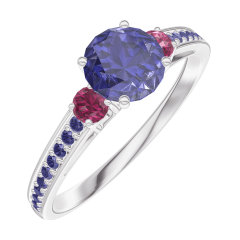 « L'ATELIER » NR. 163655Ring Weißgold 750/-(18Kt) - Blauer Saphir rund 0.5 Karat - Seitliche Steine Rubin - Fassung Blauer Saphir 4.8