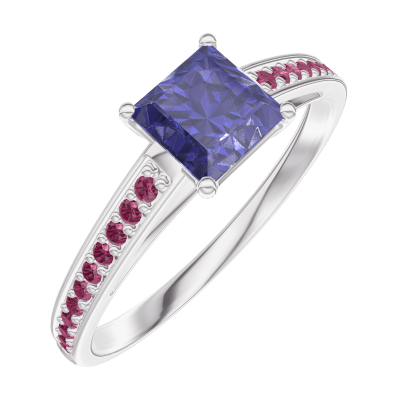 « L'ATELIER » Nº163712Ring Weißgold 375/-(9Kt) - Blauer Saphir Prinzess 0.5 Karat - Fassung Rubin